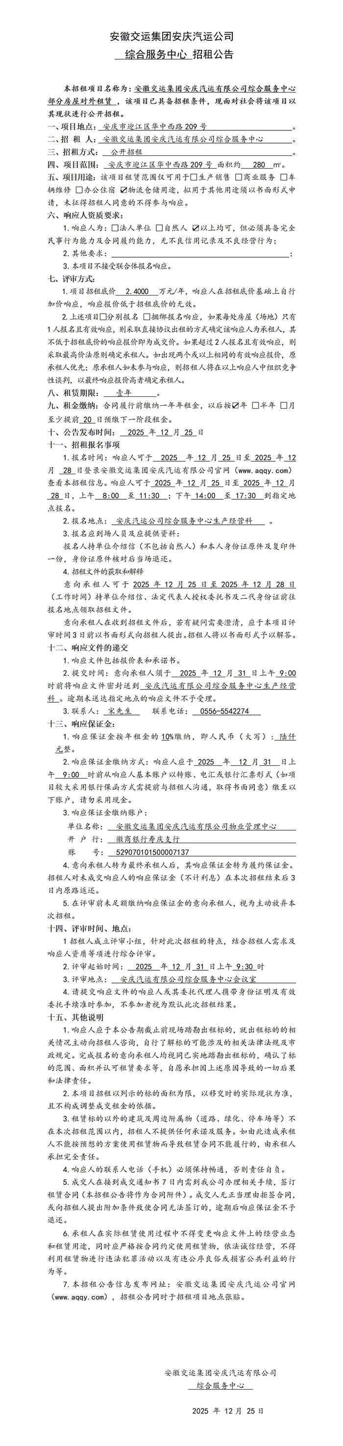綜合服務(wù)中心招租公告