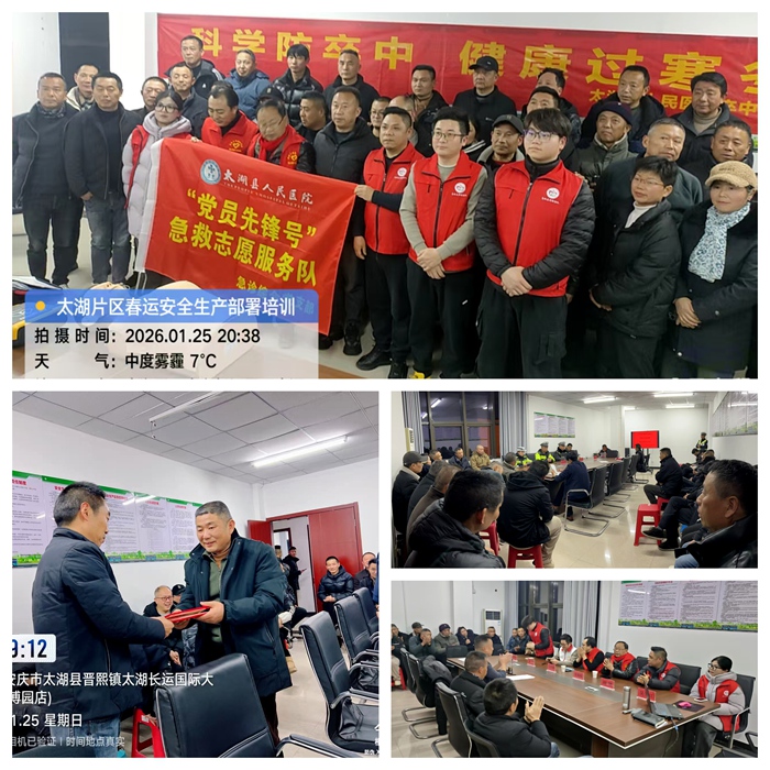 1月25日晚,太湖片區(qū)順利召開了2026年度安全生產(chǎn)暨春運(yùn)春節(jié)動員部署工作會議。此次會議匯聚了太湖縣交管大隊(duì)、縣運(yùn)管中心、縣人民醫(yī)院急救中心領(lǐng)導(dǎo)和專家,太湖片區(qū)領(lǐng)導(dǎo)、管理人員及全體駕駛員,共同為即將到來的春運(yùn)工作做好充分準(zhǔn)備。